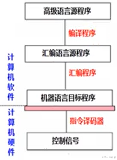 机器语言(0-1序列)-----汇编语言(助记符和标号)------高级语言