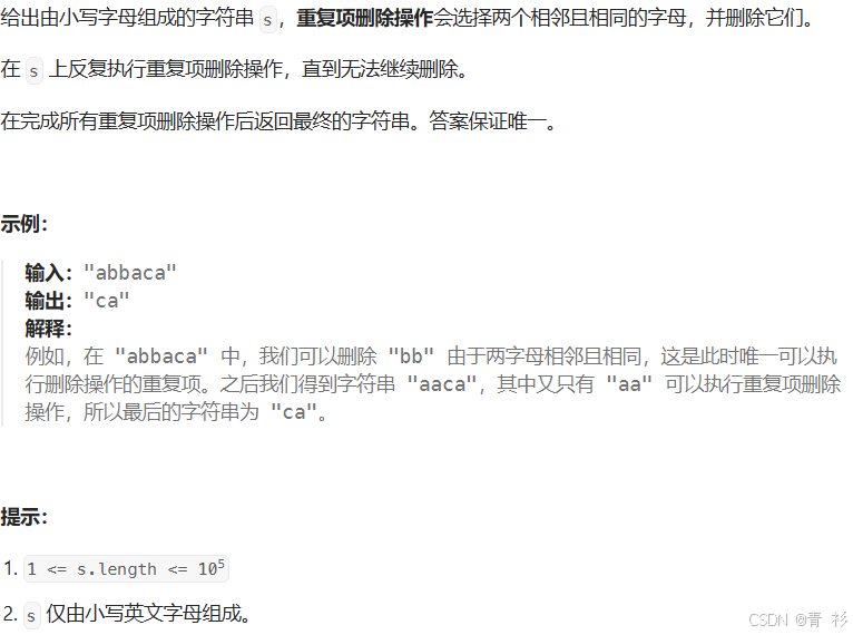 删除字符串中的所有相邻重复字符题目如下: