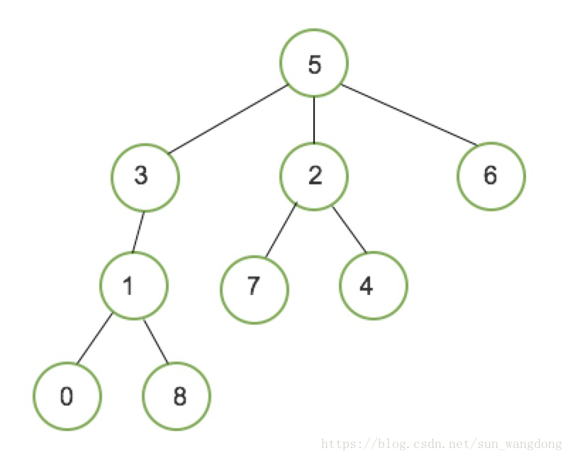 输入:root = [3,5,1,6,2,0,8,null,null,7,4], target = 5, K = 2 输出:[7,4,1] 解释: 所求结点为与目标结点(值为 5)距离为 2 的结点, 值分别为 7,4,以及 1 注意,输入的 "root" 和 "target" 实际上是树上的结点。 上面的输入仅仅是对这些对象进行了序列化描述。 提示: