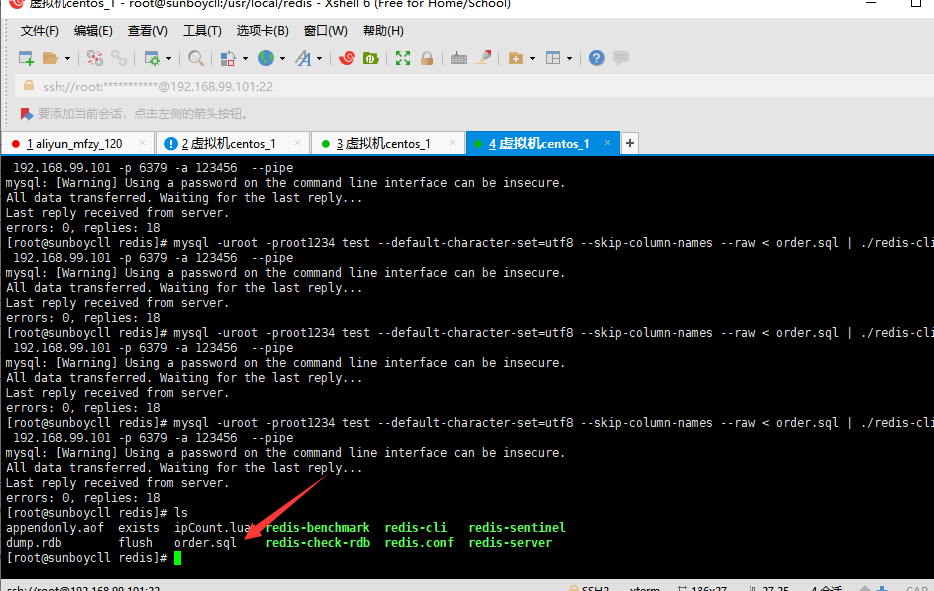 2,然后将order.sql放到redis的安装目录下(与redis-server启动文件同目录),在--raw<order.sql的时候,会被找到