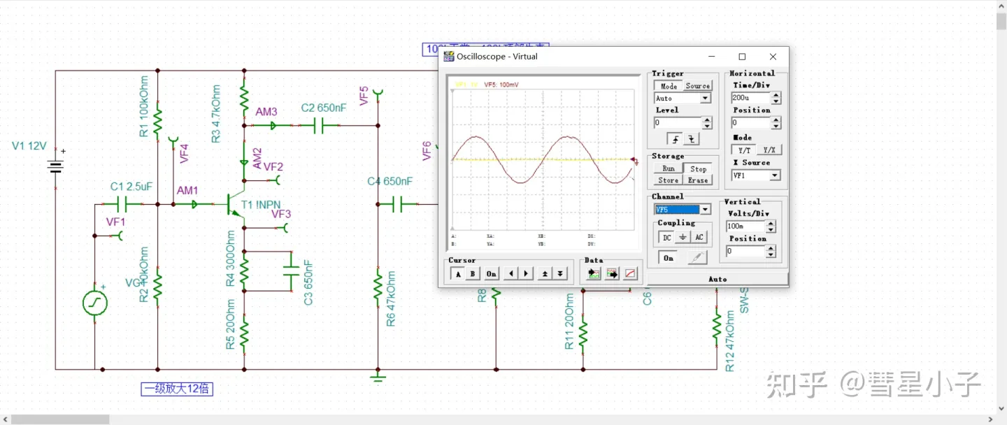 在华科那本模电书上的184页介绍了这种电路,基极分压式射级偏置电路。这是一级放大,为什么要专门设计一个放大电路,大概是示波器精度不够,而且直接显示20mv的峰峰值噪声会很大,波形看起来会很跳动。(我这个回答很不专业,希望有人能讲一下更好的解释。)