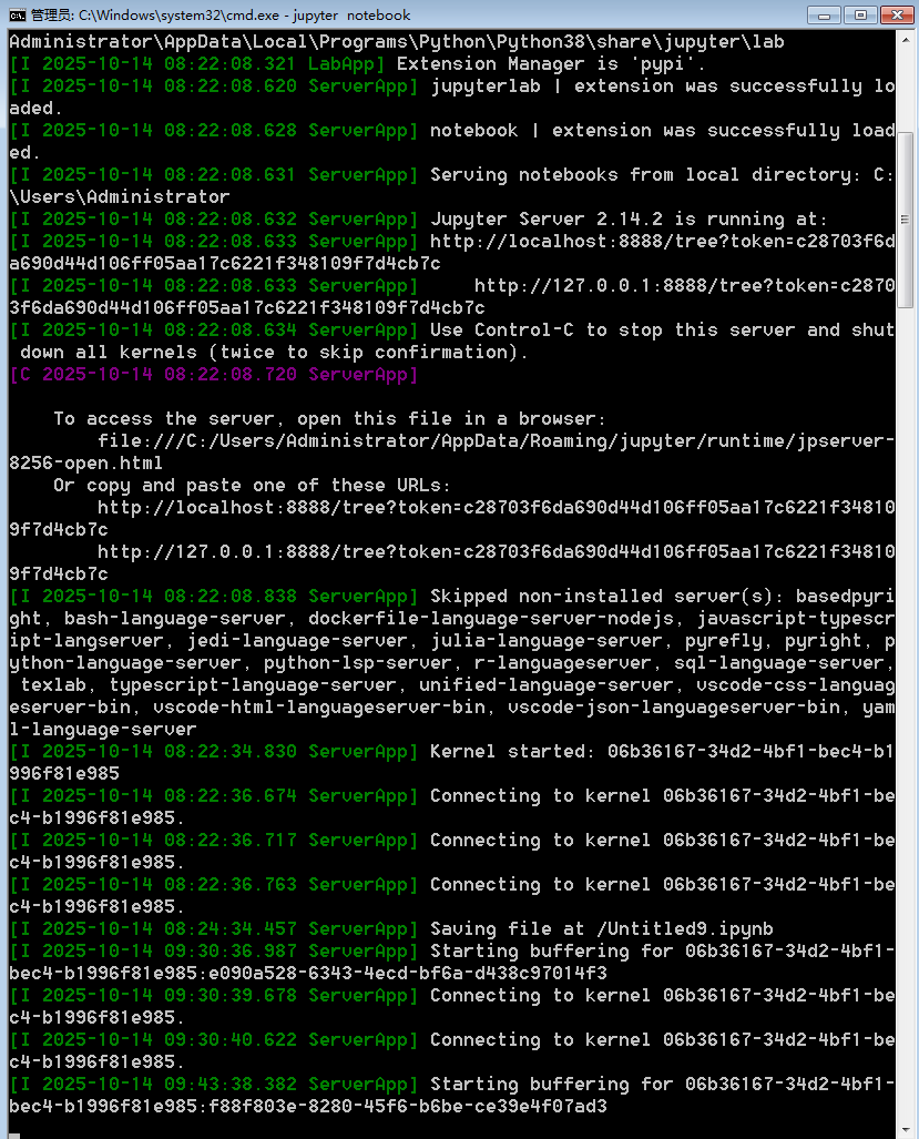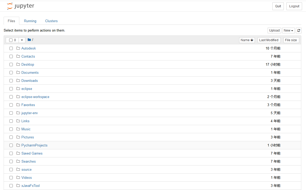 安装完成后输入jupyter notebook即可成功启动,并进入jupyter.