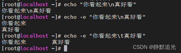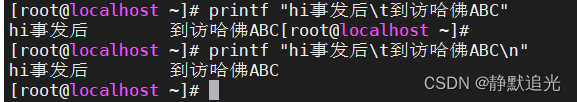 - printf命令自动识别\n,\t等特殊命令,并且在结尾处不会自动换行