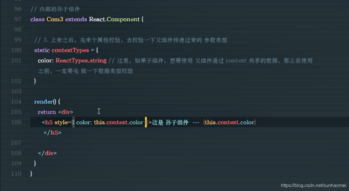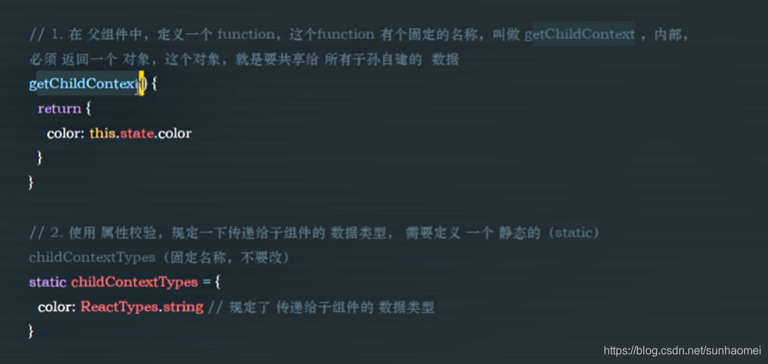 父组件使用context属性(可以实现给父组件给孙子组件传值)