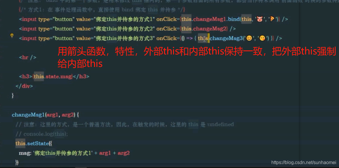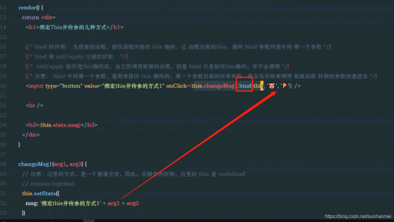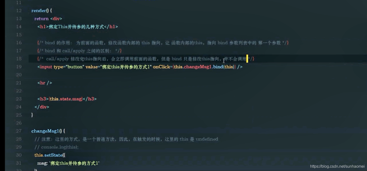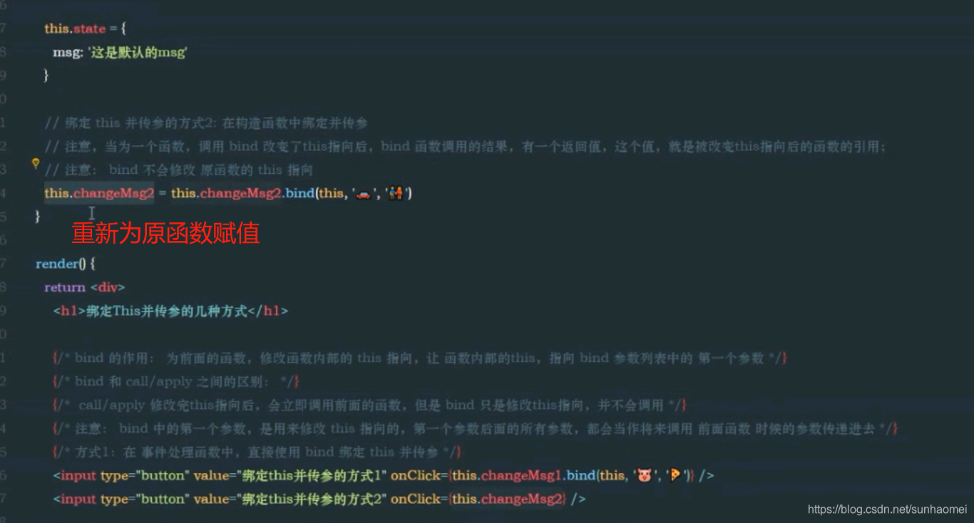 区别:在事件中修改的话,每次都要重新bind,在构造函数中Bind 全局只需要bind一次,今后每次调用都会指向实例