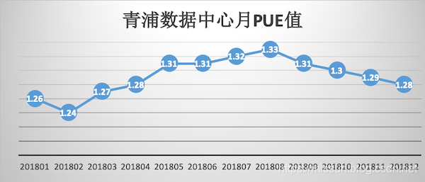 2019年10月11日,全球知名绿色认证组织USGBC(美国绿色建筑委员会),以及旗下的绿色数据中心委员会等多个机构的业内专家应邀前往腾讯青浦二期数据中心,共同见证了其运营成果:在诸多节能措施的作用下,腾讯青浦二期数据中心实现了年度PUE值为1.29(2018年1月1日-2018年12月31日)。最低的月度PUE值达到1.24,最热月度PUE值控制在1.33以下。