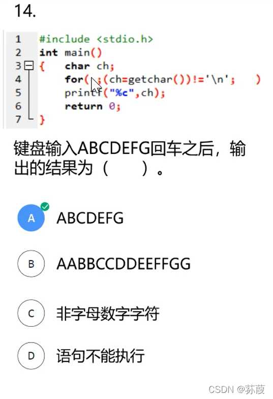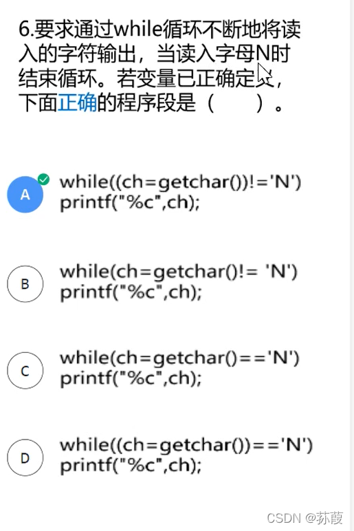 本题考查getchar函数以及C中混合运算时运算的优先级,while后的表达式关心逻辑值的真假