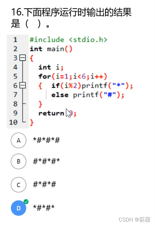 i%2和(i%2)!=0等价,for循环执行5次,不可能输出6个符号。