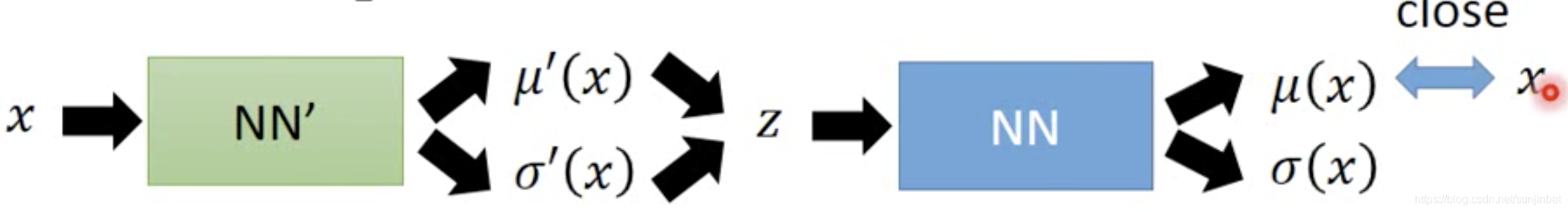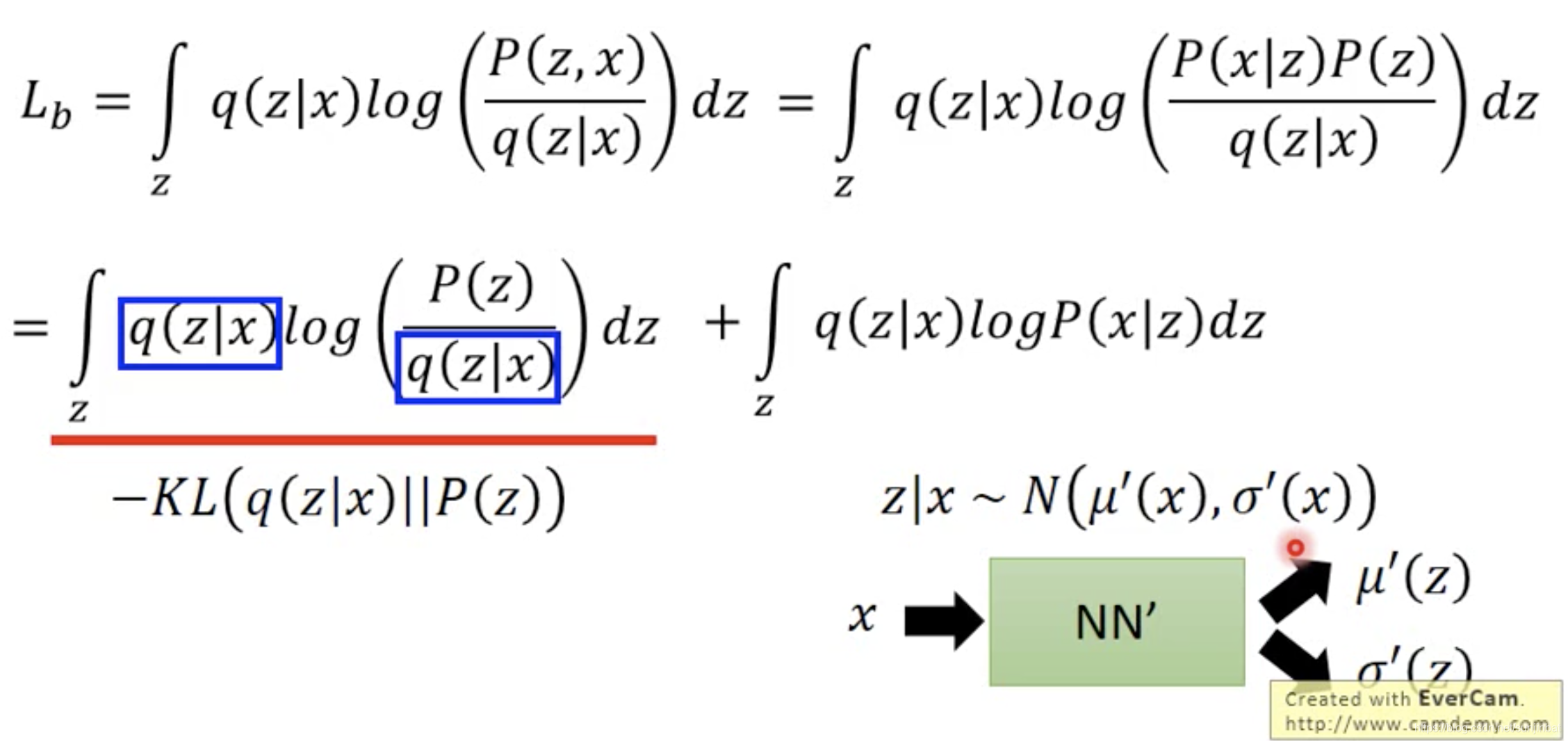 从后面来看,P(x)是decoder 的可能性,当然要最大,这里的q是encoder一般选择正态分布。