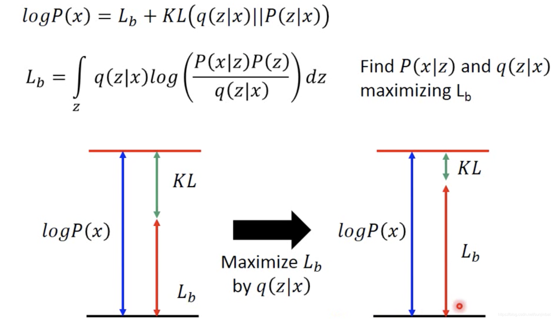 为了最大化likelyhood,q(z|x)和p没有关系,因此最大化q(z|x)可以让lb增加并且减小了kl。