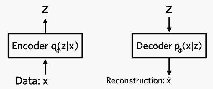 上面的第一部分,可以看做是重建 loss,就是从 x∼z∼x的这样一个过程,可以表示成上面的熵的形式,也可以表示成最小二乘的形式,这个取决于x本身的分布。后面的 KL 可以看做是正则项,qθ(z∣x) 可以看成是根据x推导出来的z的一个后验分布,p(z)可以看成是z的一个先验分布,我们希望这两个的分布尽可能的拟合,所以这一点是VAE与GAN的最大不同之处,VAE对隐变量z是有一个假设的,而GAN里面并没有这种假设。 一般来说,p(z)都假设是均值为0,方差为1的高斯分布 𝒩(0,1)如果没有 KL 项,那VAE就退化成一个普通的AE模型,无法做生成,VAE中的z隐变量是一个分布,或者说近似高斯的分布,通过对这个概率分布采样,然后再通过decoder网络,VAE可以生成不同的数据,这样VAE模型也可以被称为生成模型。