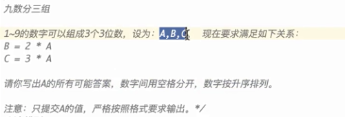 该博客介绍了一个Java程序,通过全排列算法寻找满足特定数学关系的3位数组合。程序寻找三个3位数(A、B、C),其中B等于2倍的A,C等于3倍的A。经过全排列计算,找到了一组解为192, 219, 332。这个例子展示了编程在解决数学问题中的应用。