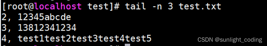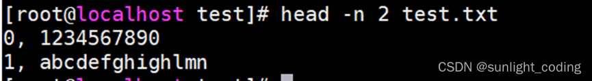 head 命令可用于查看文件的开头部分的内容,有一个常用的参数 -n 用于显示行数,默认为 10,即显示 10 行的内容