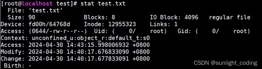 命令用于显示 inode 内容。stat 以文字的格式来显示 inode 的内容