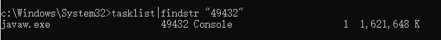 (3)继续输入tasklist|findstr "49432",回车,查看是哪个进程或者程序占用了49432端口