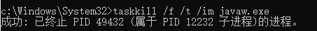 (4)输入:taskkill /f /t /im javaw.exe,结束该进程。