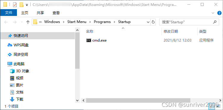 2、将需要开机自动运行的任意东西,程序、文件夹都可以,复制到该文件夹中即可实现开机自动运行。
