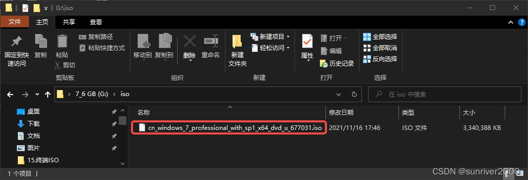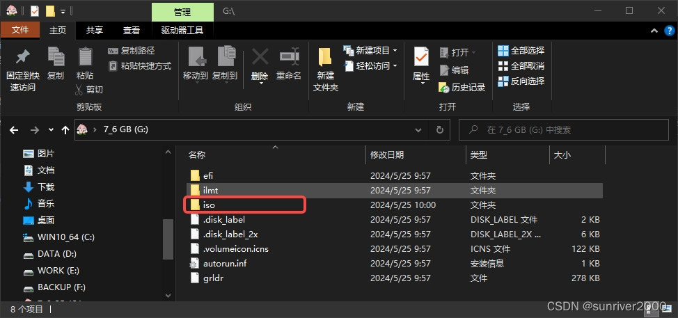 2、U盘内创建用于保存win7 ISO目录,并复制入文件。
