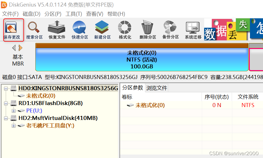 打开DiskGenius磁盘工具(这个PE系统已有内置)。