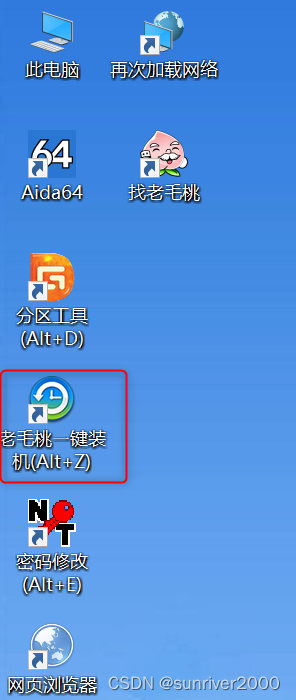 在PE桌面找到【老毛桃一键装机】图标,并运行。