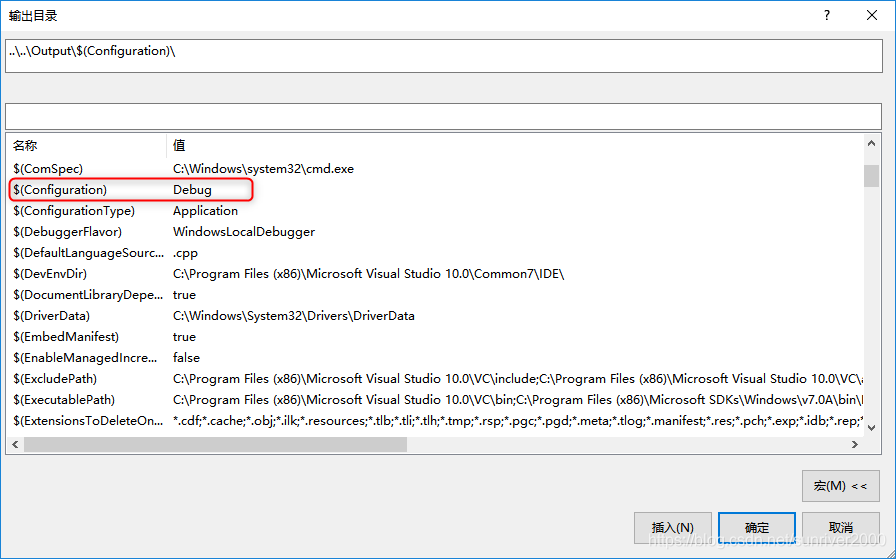 | $(TargetDir) | 生成的主输出文件的目录(定义为驱动器 + 路径);包括尾随反斜杠 “\”。 |