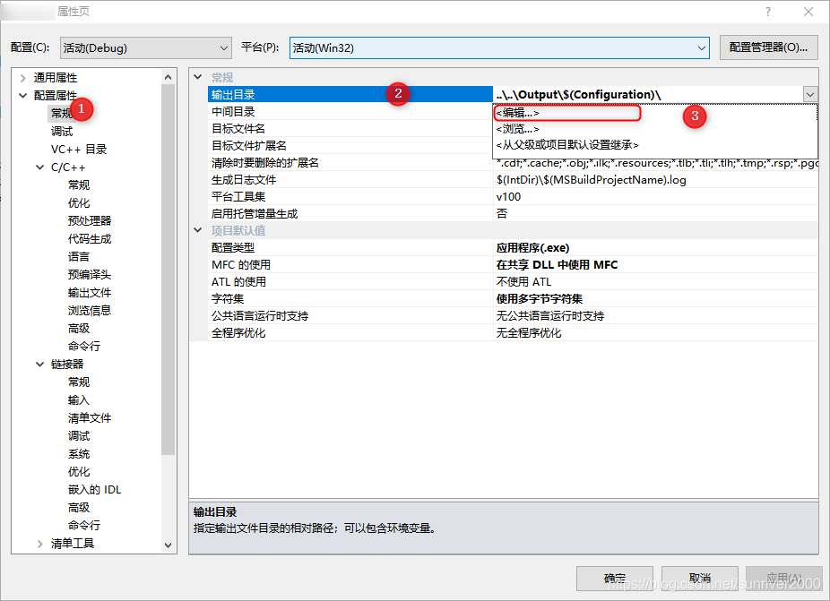 在左侧列表框中选择 常规 页面,在 输出目录 中点选 编辑。