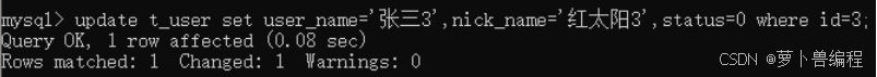 SET:后面跟着你想要修改的列名和它们对应的新值。你可以一次更新多个列。