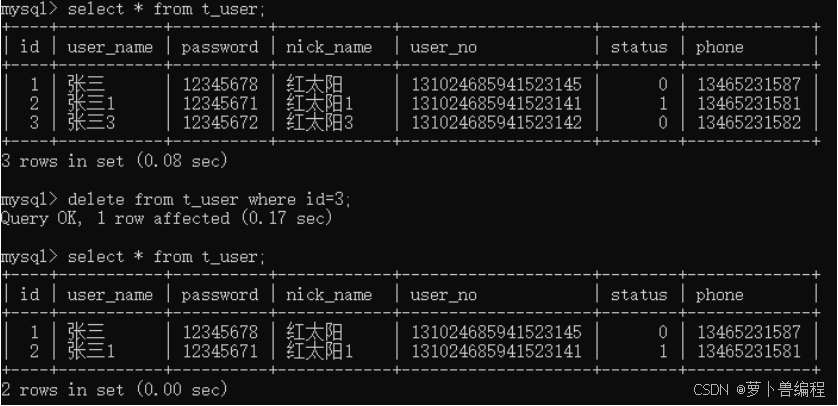 删除数据记录是数据操作中常见的操作,可以删除表中已经存在的数据记录。在MySQL中可以通过DELETE语句来删除数据记录,该SQL语句可以通过以下几种方式使用:删除特定数据记录、删除所有数据记录。