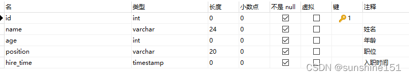 新建测试表