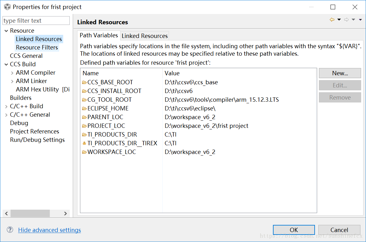 点击 Resource → Linked Resources: → Path Variables → New,出现如下界面: