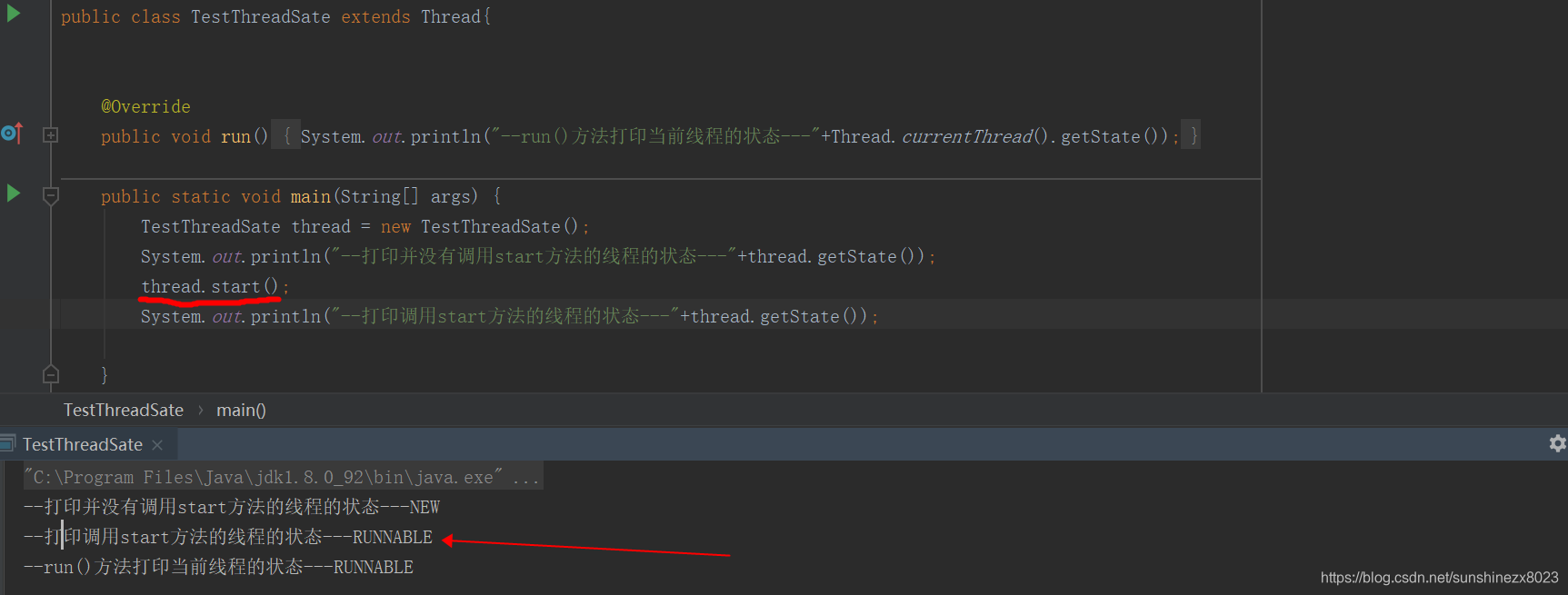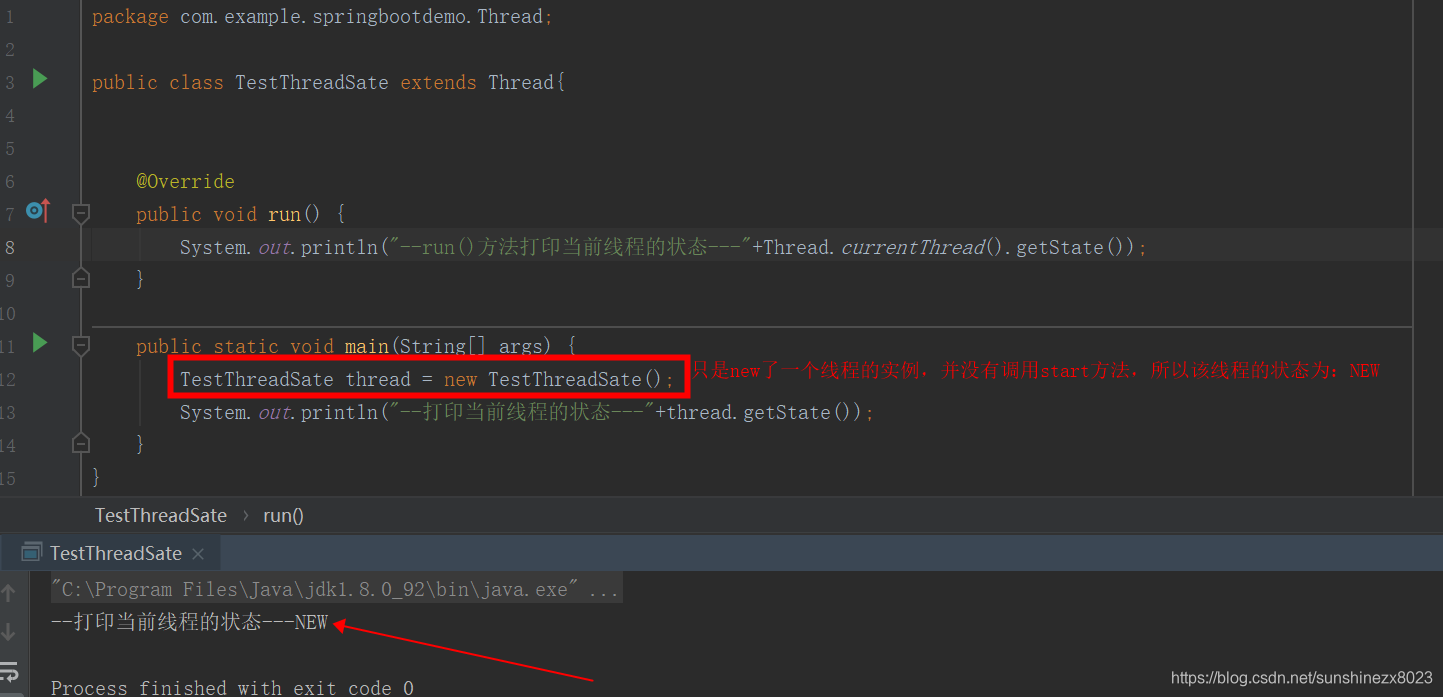 NEW:初始状态 - 新创建了一个线程对象,但还没有调用start()方法。