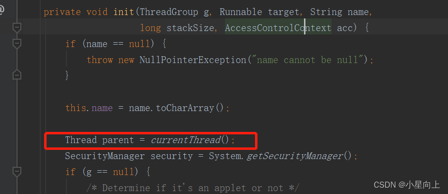 new Thread() -> 调用构造方法 -> 获取到当前线程 -> 拿到当前线程的inheritableThreadLocals变量 -> 赋值给新的线程
