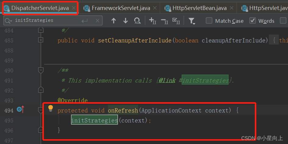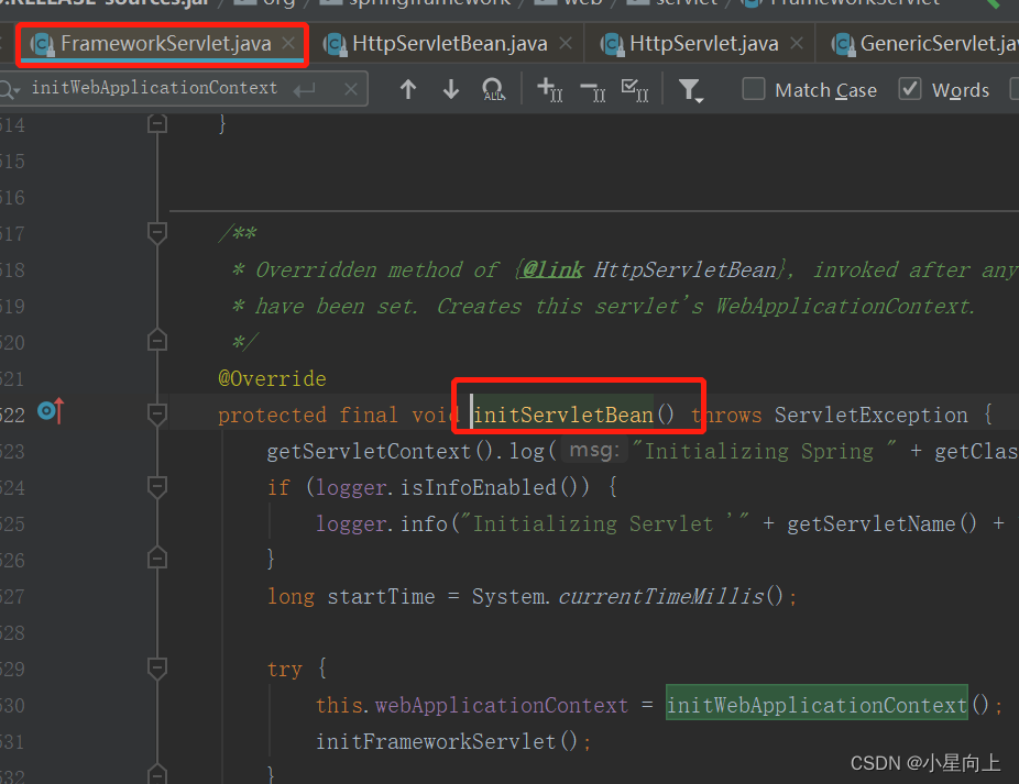 1.最终会调用到springmvc的jar包中的HttpSerlvetBean的init()方法中: