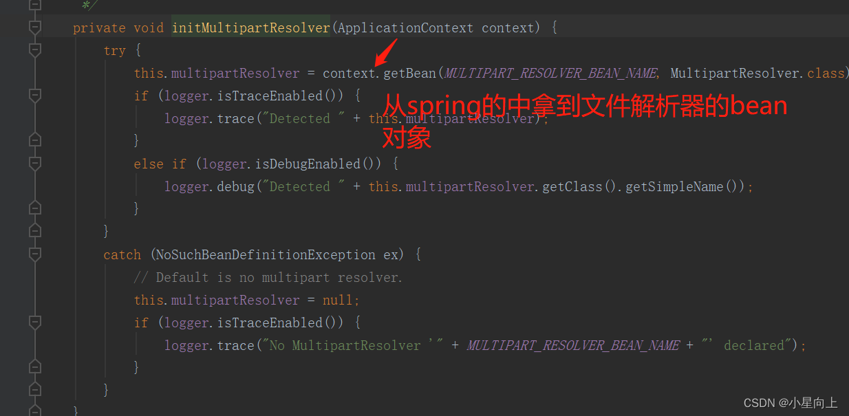 从spring中获取MultipartResolver类型的Bean - 也就是我们注册的文件解析的对象