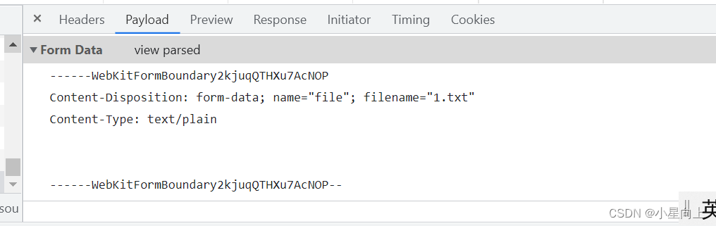 请求体中的 数据格式如下,所以为啥要用上传组件帮我们进行分割、解析;