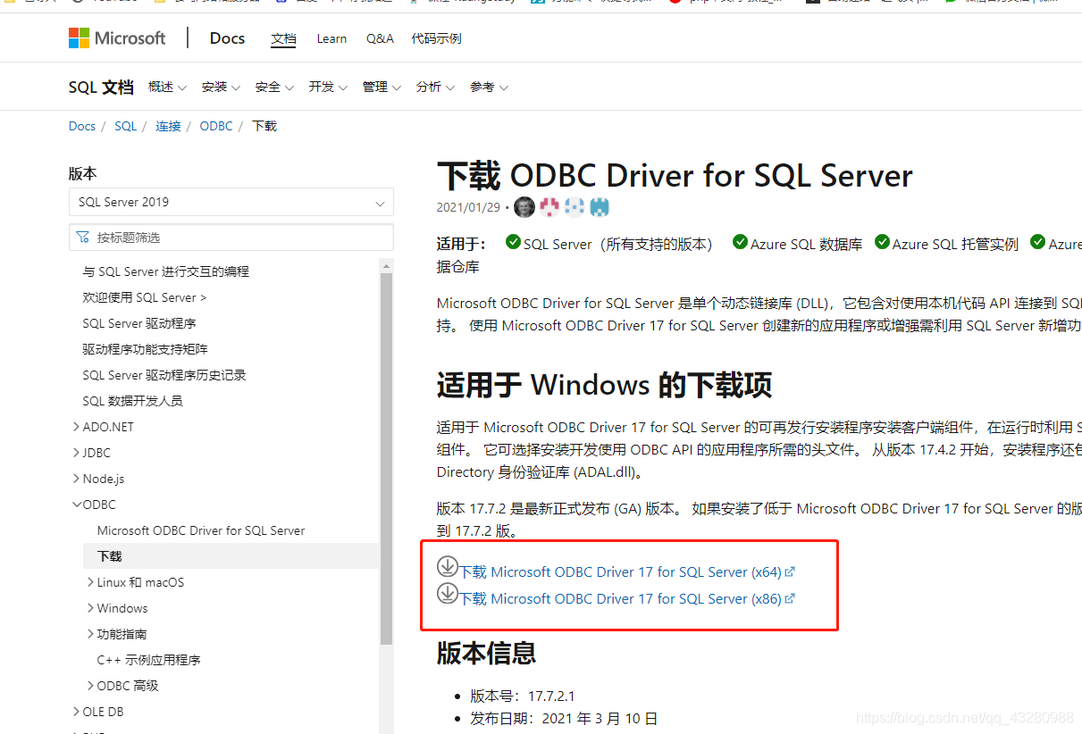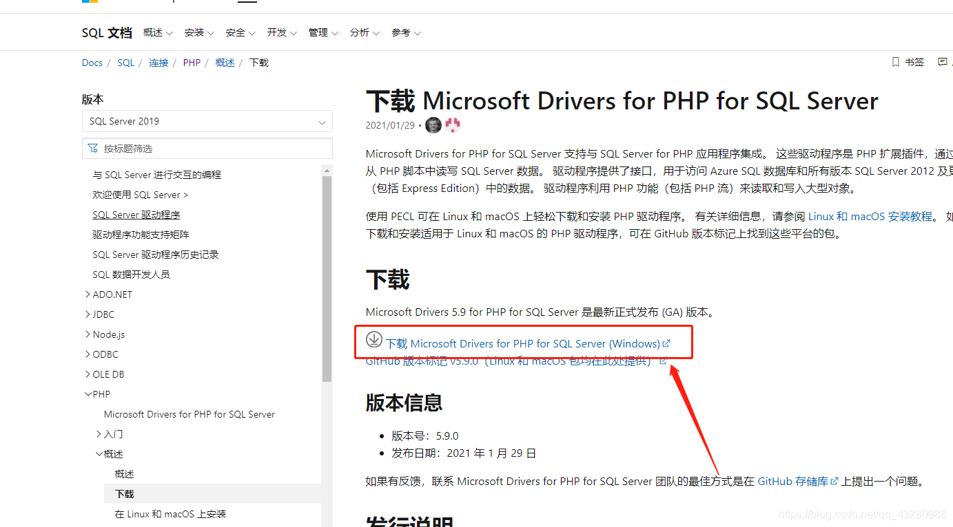 然后点击下面的位置下载SqlSserver驱动包进行安装