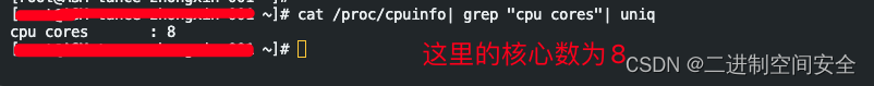 CPU核心数表示CPU上的运算单元数量,也就是通常所说的CPU核心,使用命令:cat /proc/cpuinfo| grep "cpu cores"| uniq 直接查看