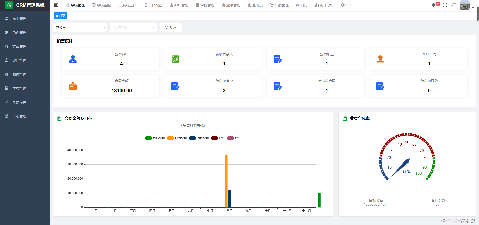 这是一个集成了Vue前端、Spring Boot后端和UNIAPP开发的小程序的客户关系管理(CRM)系统。提供部门、员工、角色管理等系统设置,涵盖客户、合同、回款的全面流程,并具备审批、业绩目标、产品管理和日历功能,还包含丰富的统计分析模块。