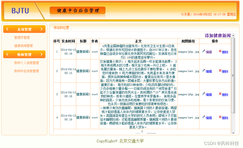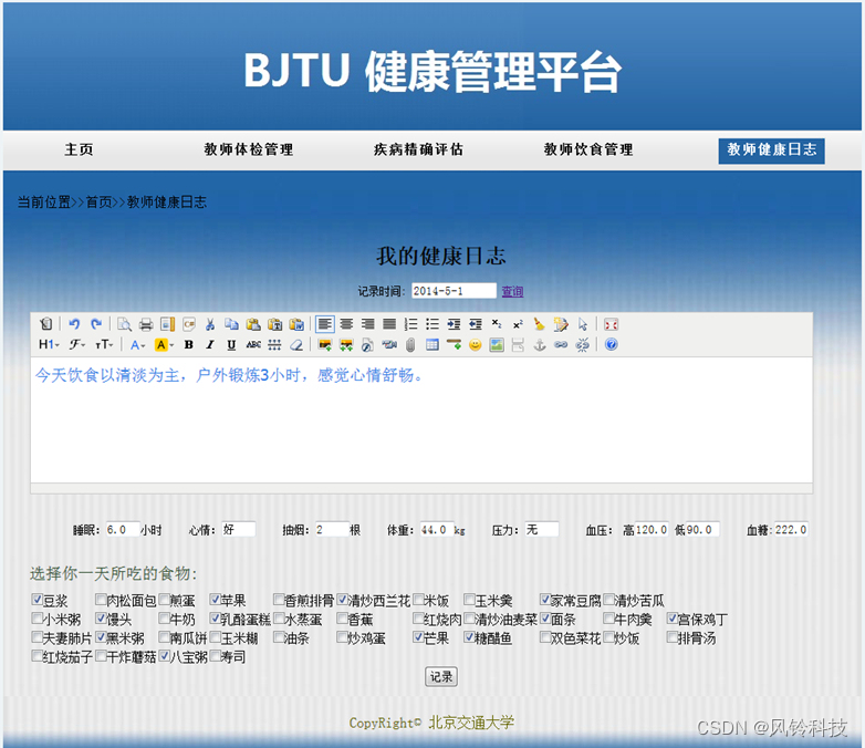 javaEE健康管理系统主要功能包括:教师登录退出、教师饮食管理、教师健康日志、体检管理等等。本系统结构如下: