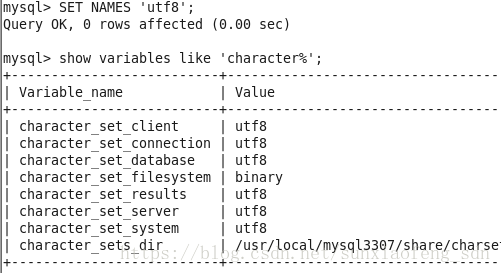 SET NAMES ‘utf8′;
