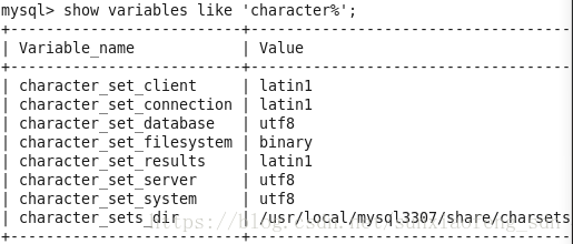 一:登录MySQL查看用SHOW VARIABLES LIKE ‘character%’;下字符集,显示如下: