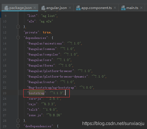1、首先在package.json文件中加入:"bootstrap": "^4.1.3",如下图所示: