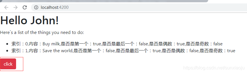 <li *ngFor="let todo of todos;index as idx;first as isFirst;last as isLast;even as isEven;odd as isOdd">索引:{{idx}},内容:{{todo}},是否是第一个:{{isFirst}},是否是最后一个:{{isLast}},是否是偶数:{{isEven}},是否是奇数:{{isOdd}}</li>