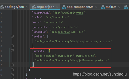 "scripts": [ "node_modules/jquery/dist/jquery.min.js", "node_modules/bootstrap/dist/js/bootstrap.min.js" ]