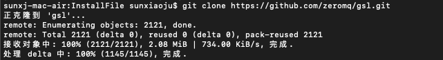2、然后通过git clone https://github.com/zeromq/gsl.git,如下图所示: