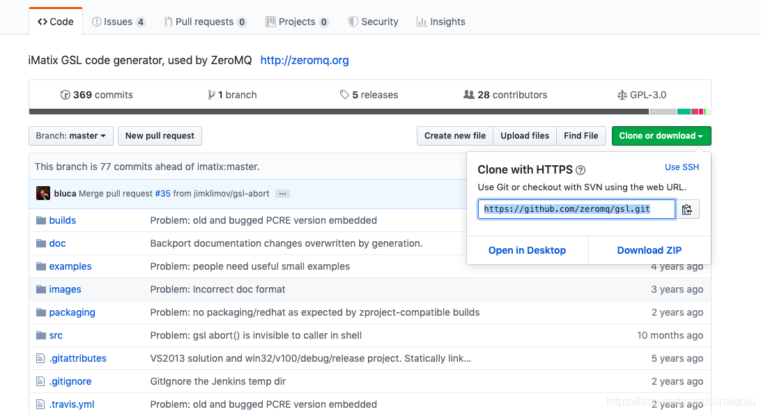 1、首先在https://github.com/zeromq/gsl找到https://github.com/zeromq/gsl.git,如下图所示: