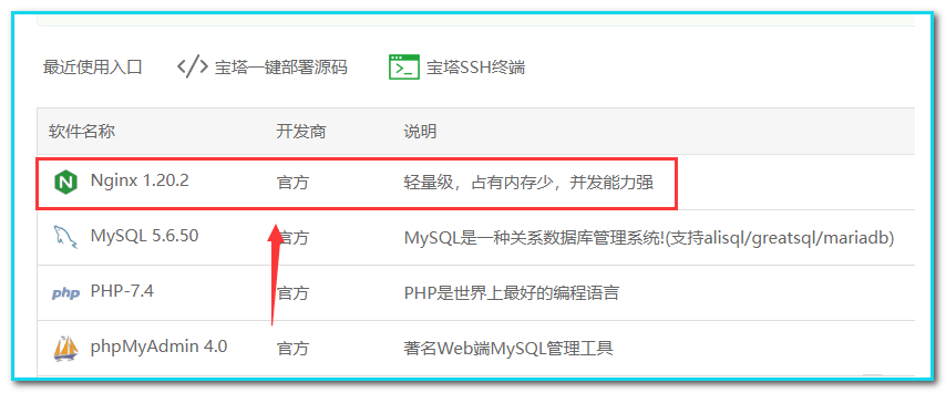 3. 相较于Web服务器,云服务器的功能更强大,在云服务器中可以安装web服务器程序,例如,我用宝塔面板(服务器管理软件)给我的云服务器安装Nginx服务器程序(Nginx,Apache,IIS是现阶段三个最主流的web服务器程序),当然云服务器的功能不止这些,所以从某个角度来说web服务器是云服务的子集。