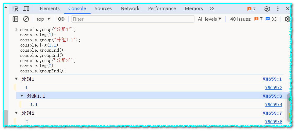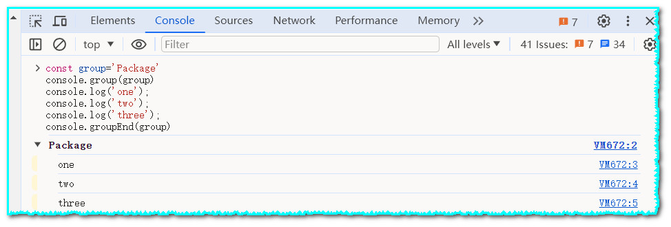有时候打印的消息很多可以使用console.group()打印,针对某一功能分成一个组。
