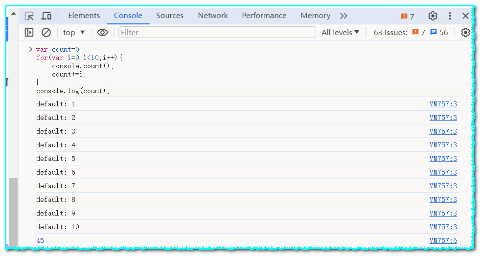 console.count()方法用来输出console.count(); 所在语句执行的次数,也就是用于计数,输出它被调用了多少次。例如,你要看一个循环是否执行了你预想的次数,可以在循环中放入一个console.count("str");这样,循环执行完成后,控制台就会显示出循环执行的次数。