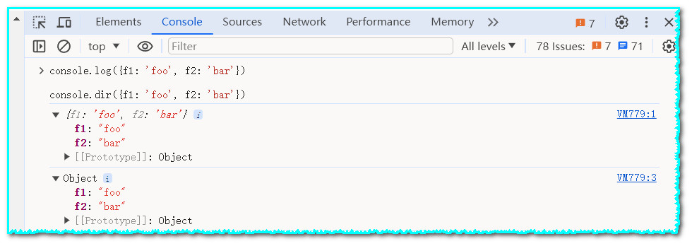 如果输出内容为对象,在控制台中也查看对象的属性和方法等信息。目前输出内容支持以下几种格式: